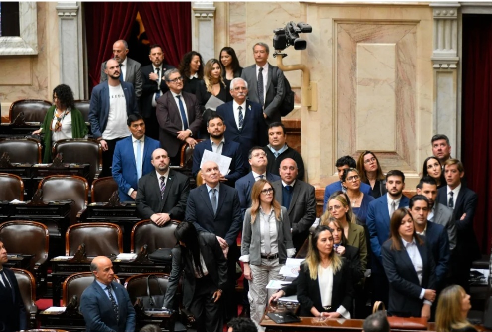Luego, se trató el veto a la Ley de Financiamiento para las Universidades Nacionales, con 174 votos a favor del rechazo y 67 en contra. Al terminar, los diputados opositores se pararon de sus asientos y cantaron himnos en apoyo a la educación pública, mostrando su entusiasmo por la victoria.