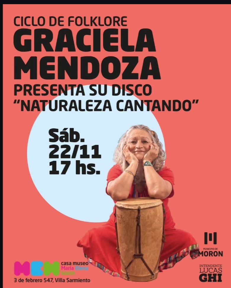 – Actividad: Concierto de folklore a cargo de la cantante y compositora Graciela Mendoza con su proyecto “Naturaleza Cantando”. Graciela Mendoza es una artista reconocida en el ámbito del folklore argentino, con una trayectoria dedicada a la música popular y las expresiones de pueblos originarios.