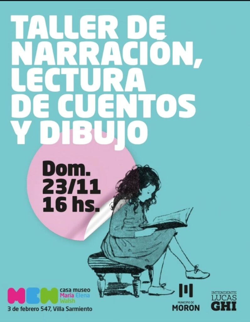 Domingo 23 de noviembre: Taller de Narración, Lectura de Cuentos y Dibujo- Horario: 16 horas (taller) y 17:30 horas (espectáculo complementario “Sin Cordones”, según programación reciente del municipio).