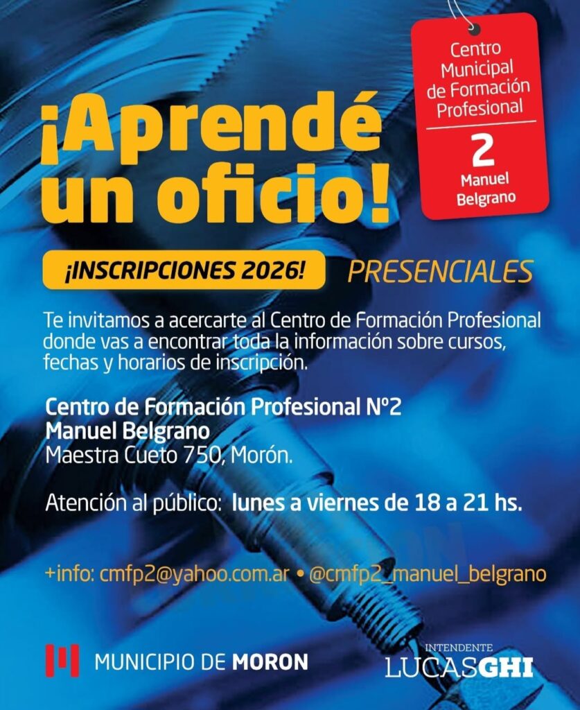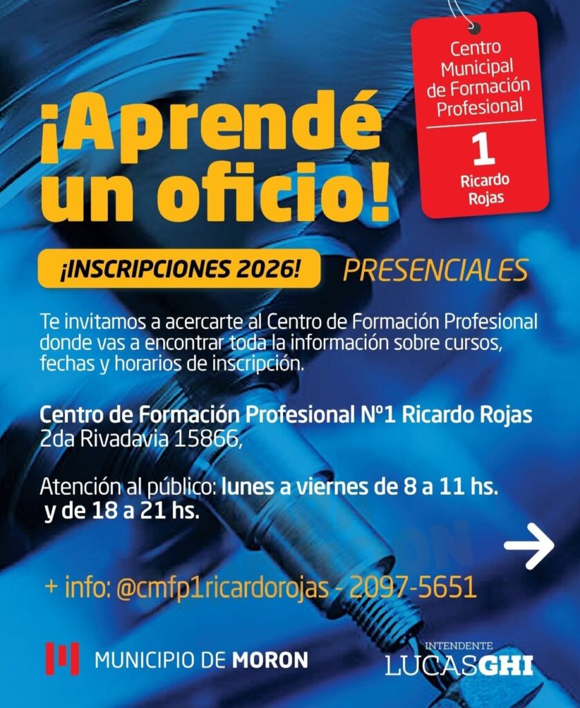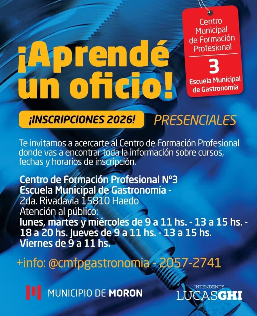 Para inscribirte, presenta DNI, constancia de estudios primarios y domicilio en Morón en las sedes o vía online en el sitio del municipio. No te pierdas esta oportunidad: convertí tus intereses en un oficio rentable para el 2026