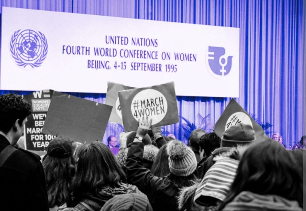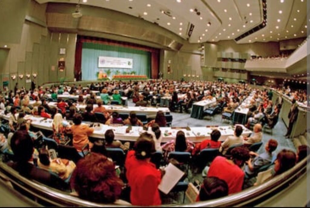 En septiembre de 1995, se celebró en Beijing (China) la Cuarta Conferencia Mundial sobre la Mujer, organizada por las Naciones Unidas. Este evento reunió a más de 17.000 participantes oficiales, incluyendo delegados de 189 países, y atrajo a unas 30.000 activistas en un foro paralelo de ONG en Huairou. Marcó un punto de inflexión en la agenda global por la igualdad de género, consolidando avances de conferencias anteriores.